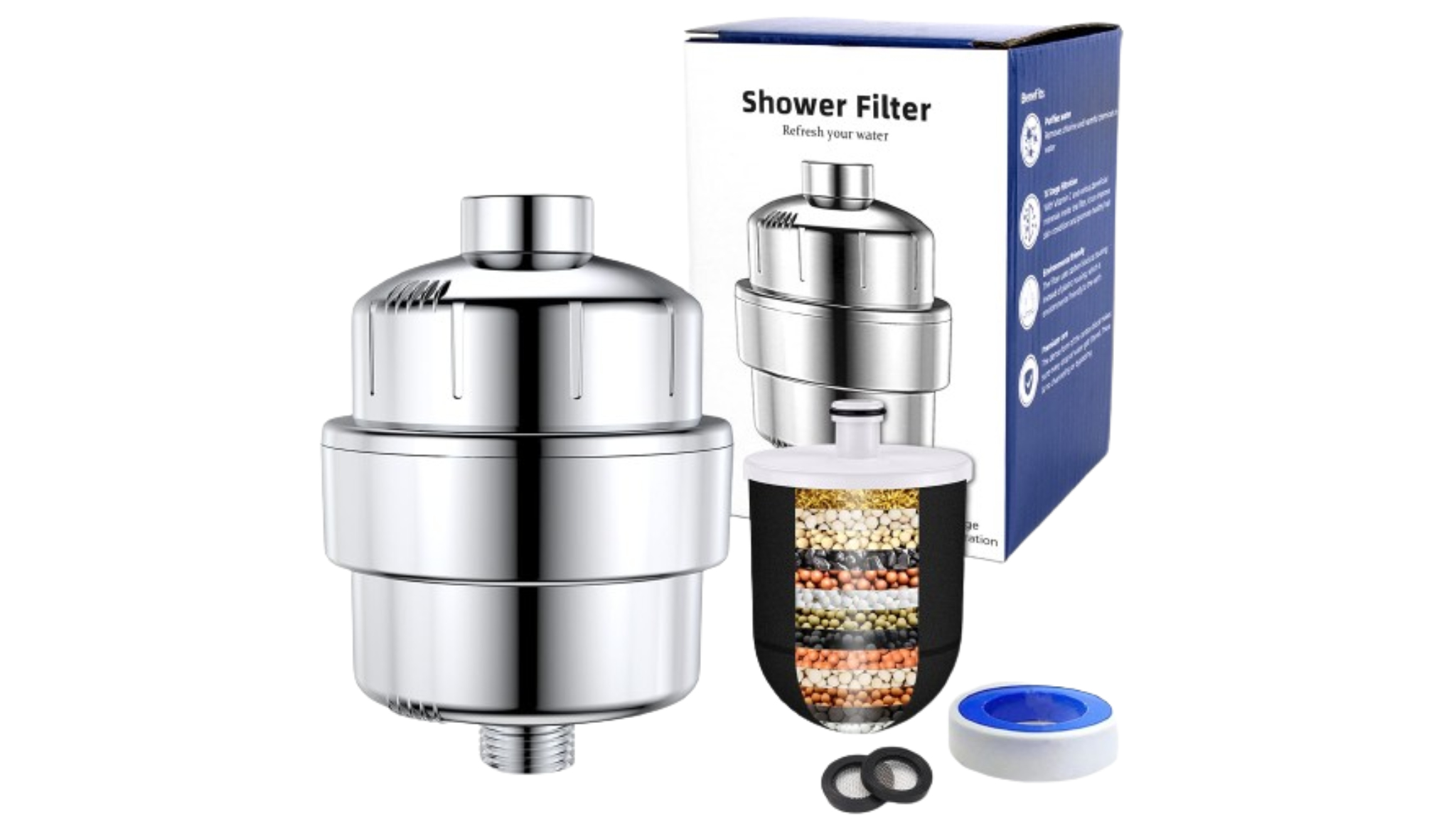 Upgrade your shower with our Shower Filter with 15 Stages! It’s like a superhero for your water, removing all sorts of harmful contaminants like chlorine and heavy metals. With its advanced filtration system, it ensures your skin and hair feel super clean and soft after every shower. Easy to install and long-lasting, it’s the perfect addition to any bathroom for a healthier and more refreshing shower experience.